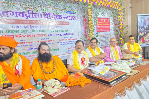 गीता हमें जीवन जीने की कला सिखाती है: डा0 संदीप चतुर्वेदी फर्रुखाबाद, समृद्धि न्यूज। श्रीमद् भागवत गीता वैदिक न्यास कार्यक्रम का आयोजन सरस्वती विद्या मंदिर इंटर कालेज श्याम नगर में आयोजन हुआ। संगोष्ठी की अध्यक्षता ईश्वरदास ब्रह्मचारी ने की। मुख्य अतिथि संघ के राष्ट्रीय अध्यक्ष उमेश पालीवाल व विशिष्ठ अतिथि राष्ट्रीय महामंत्री परमानंद रहे। आयोजक…