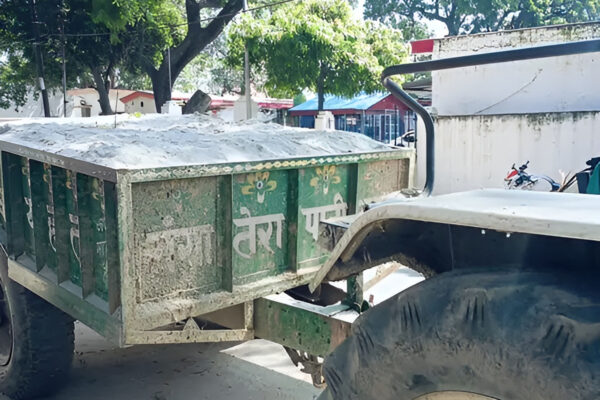 पुलिस ने बालू से भरी ट्रैक्टर.ट्राली पकड़ी, चालक मौके से फरार
