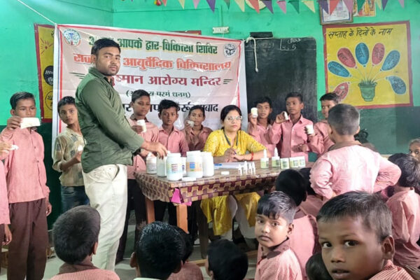 आयुर्वेद दिवस पर डॉक्टर ने बच्चों को दी जानकारी