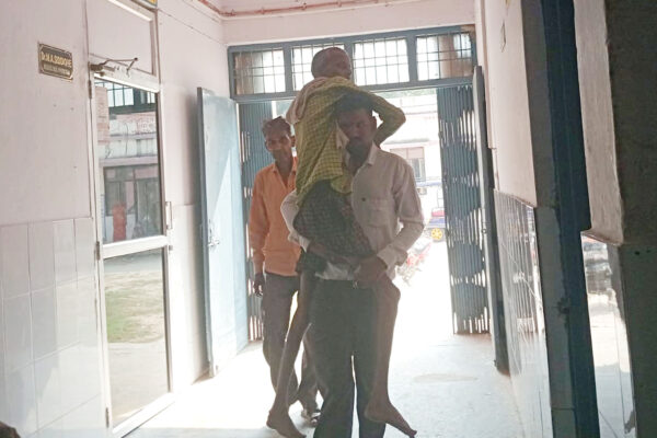 लाचार मरीज को नहीं मिला स्ट्रेचर, कंधे पर उठाकर पहुंचाया अस्पताल