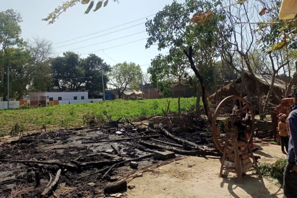 एचटी लाइन टूटकर गिरने से फूस बंगला एवं घरेलू सामान जला