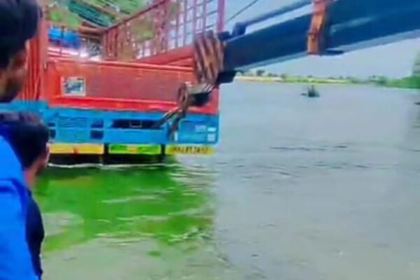 बूढ़ी गंगा के पुल पर बाढ़ के पानी में फंसी डीसीएम