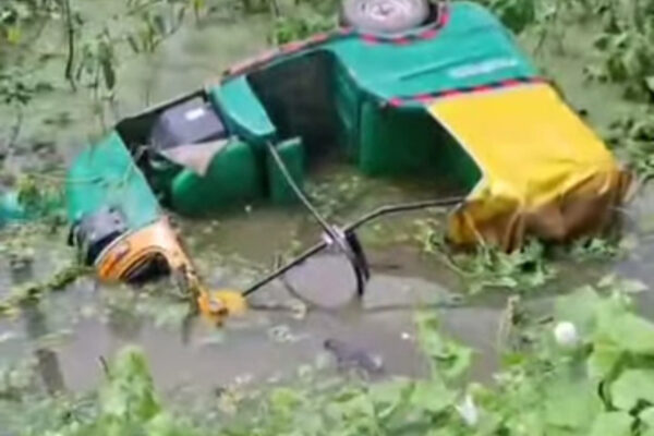 सवारियों से भरा टेंपो तालाब में गिरा, सभी बाल-बाल बचे