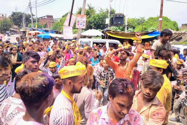डीजे रोकने पर भक्तों की पुलिस से हुई नोंकझोंक नवाबगंज, समृद्धि न्यूज। शनिवार को नगर के मुख्य बाजार थाने के सामने स्थित हनुमान मंदिर में स्थापित गणेश प्रतिमा की गणपति बप्पा मोरया कमेटी के लोगों ने पूजा अर्चना की। इसके बाद मुख्य तिराहे से अबीर गुलाल उड़ाकर ढोल नगाड़ों व डीजे के साथ गणेश प्रतिमा…