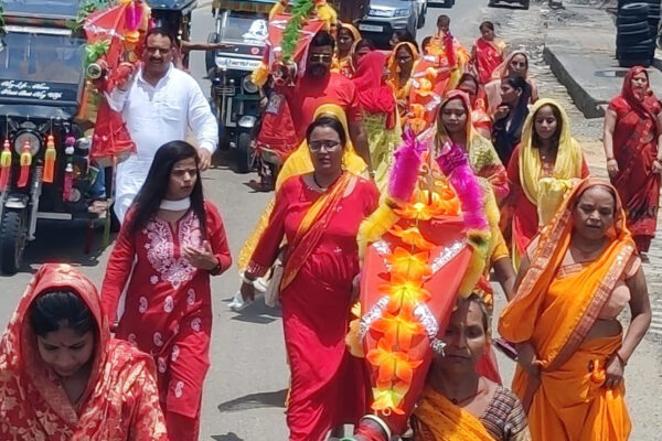 सावन माह में भगवान पार्थिवेश्वरनाथ का धूमधाम से गंगा तट पर हुआ पूजन