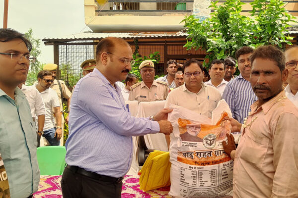 बाढ़ पीडि़तों को प्रशासन ने राहत सामग्री का किया वितरण