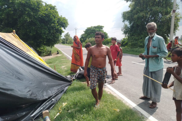 बाढ़ का पानी गांव में घुसा, ग्रामीणों ने सडक़ पर बनाया अशियाना