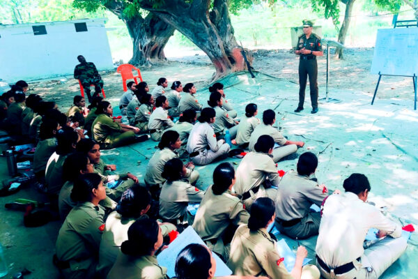 शिविर में कैडेट्सों को सिखाया जा रहा पीटी, परेड, शस्त्र प्रशिक्षण तथा टेंट पिचिंग का सही तरीका