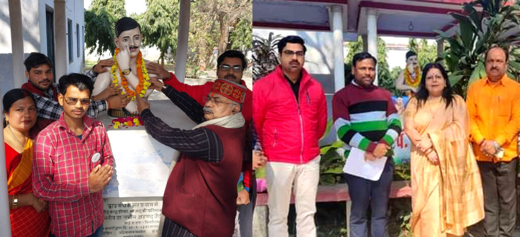 फर्रुखाबाद, समृद्धि न्यूज। बद्री विशाल महाविद्यालय में क्रांतिकारी चन्द्रशेखर आजाद का बलिदान दिवस मनाया गया। चन्द्रशेखर आजाद संघ द्वारा आयोजित विचार गोष्ठी व माल्यार्पण कार्यक्रम में मुख्य अतिथि संजय गर्ग, विशेष अतिथि स्वदेश दुबे व श्वेता दुबे एवं महाविद्यालय के प्राचार्य सीडी यादव ने माल्यार्पण किया। संजय गर्ग ने कहा कि चन्द्रशेखर आजाद एक राष्ट्र पुत्र थे। उन्होंने अपने छोटे से ही जीवनकाल में देश के प्रति स्वतंत्रता आंदोलन में अहम भूमिका अदा करते हुए अपने प्राणों को न्यौछावर कर दिया। शहीद हमारी नीव की ईंट है उन्हें भुलाया नहीं जाना चाहिए। स्वदेश दुबे ने कहा कि ऐसे महान वीर क्रांतिकारियों के पदचिन्हों पर चलकर देश के प्रति कर गुजरने के लिए तैयार रहना चाहिए। आज हमारी संस्कृत खोती जा रही है। लोग पाश्चात देशों की सभ्यता की ओर बढ़ रहे है।