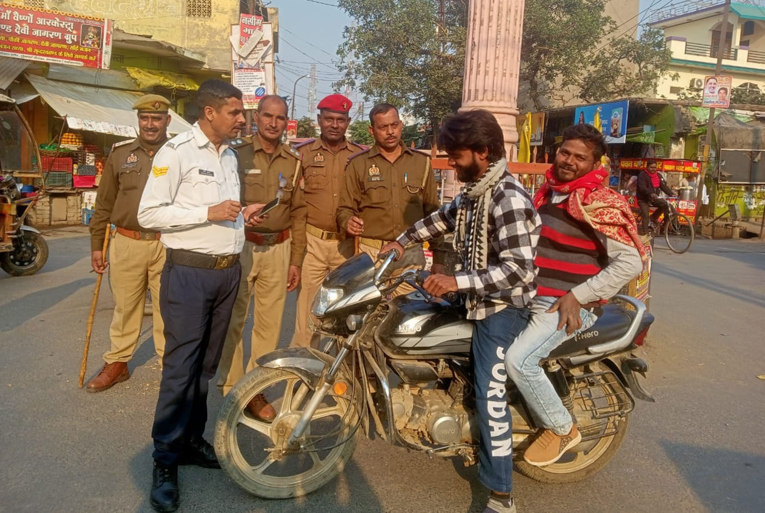 जानकारी के अनुसार शनिवार को यातायात पुलिस ने नगर में वाहन चेकिंग अभियान चलाया। जिससे वाहन स्वामियों में पूरे दिन हडक़ंप की स्थिति रही। क्षेत्राधिकारी संजय वर्मा ने दोपहर को सघन वाहन चेकिंग अभियान चलाने के निर्देश दिए। जिस पर ट्रैफिक इन्चार्ज सर्वेश कुमार द्वारा नगर के ट्रान्सपोर्ट चौराहे पर बाइक पर सवार तीन लोग बिना हेलमेट, बिना कागज के बाइक चलाने वालोंं को रोककर कागजात चेक किये। न दिखा पाने पर चालान काटा। इस दौरान उन्होंने लोगों को यातायात नियमों के बारे में जानकारी देते हुए सुरक्षा के साथ सफर करने का संदेश दिया। चेकिंग अभियान के दौरान ट्रैफिक इन्चार्ज सर्वेश कुमार, कम्पनी कमान्डर इन्द्र कुमार मिश्रा, प्लाटून कमांडर ओमप्रकाश यादव, यातायात होम गार्ड जवान वीरपाल, सूरज आदि मौजूद रहे। कायमगंज यातायत पुलिस ने वाहन चेकिंग अभियान चलाये जाने से वाहन स्वामियों में हडक़ंप मच गया।