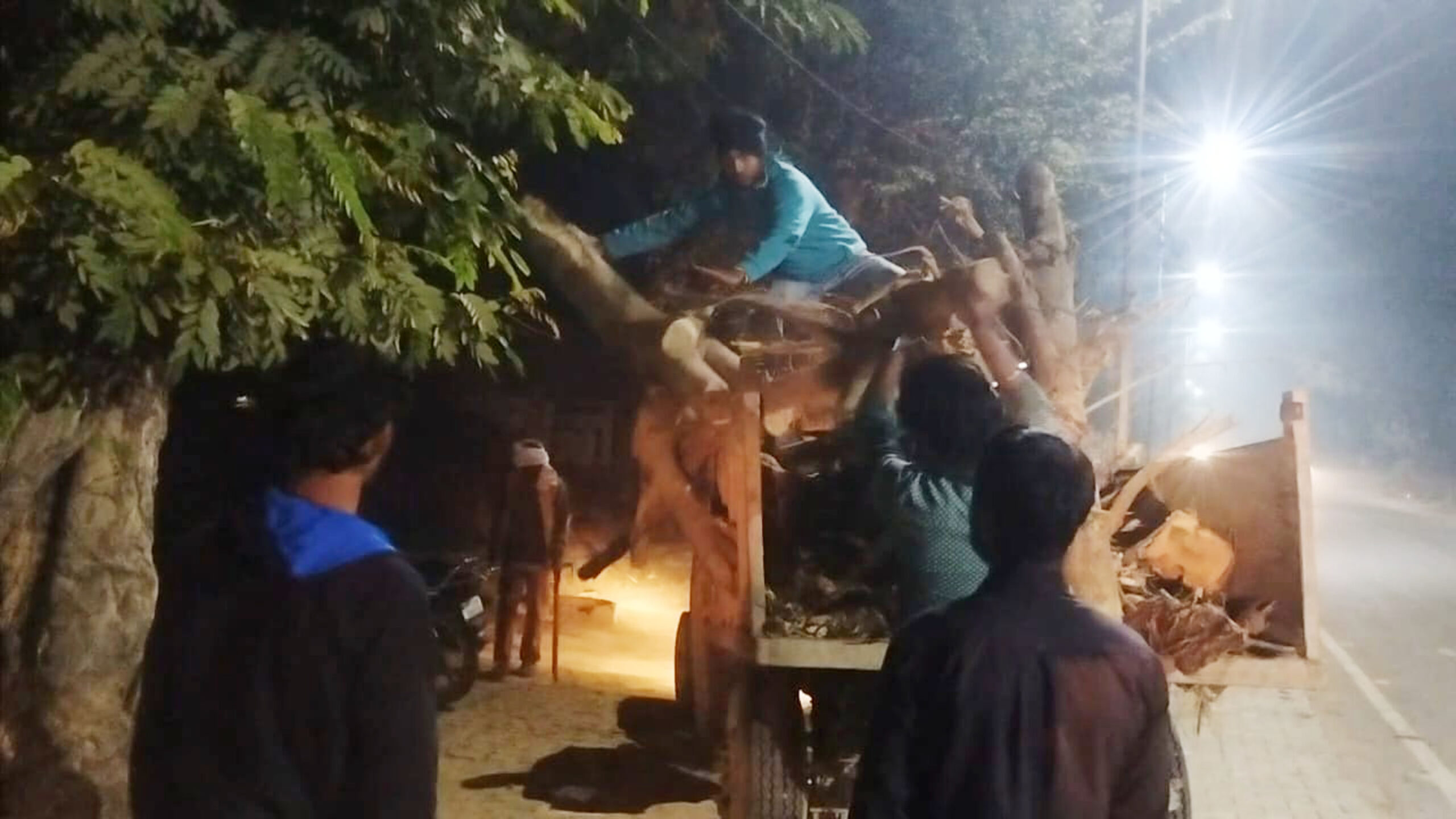 अलाव के लिए नगर में डलवायी गयीं लकडिय़ां