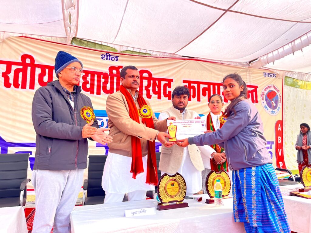 फर्रुखाबाद, समृद्धि न्यूज। अखिल भारतीय विद्यार्थी परिषद की तरफ से युवोत्सव पखवाड़ा पुरस्कार समारोह का आयोजन किया गया। मुख्य अतिथि के रुप में अभाविप के क्षेत्रीय संगठन मंत्री घनश्याम शाही व विशिष्ठ अतिथि भाजपा युवा नेता विकास राजपूत कार्यक्रम में मौजूद रहे। विभिन्न खेलों में उत्कृष्ठ प्रदर्शन करने वाले प्रतिभागियों को सम्मानित किया गया।