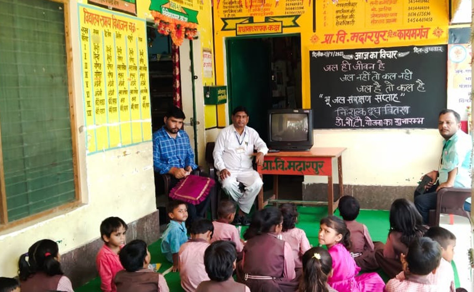 फर्रुखाबाद, समृद्धि न्यूज। प्राथमिक विद्यालय मदारपुर में मुख्यमंत्री योगी आदित्यनाथ द्वारा शुरू किए गए डीबीटी योजना का लाईव प्रसारण टेलीविजन पर स्कूल स्टाफ, बच्चों और अभिभावकों ने देखा। उन्होंने स्कूलों के लिए सरकार द्वारा चलाई जा रही सभी योजनाओं को विस्तार से जानकारी देते हुए संचारी रोग नियंत्रण, वृक्षारोपण, जल संरक्षण के महत्व पर जोर दिया। प्रधानाध्यापक राजकिशोर शुक्ल ने उपस्थित अभिभावकों से सरकार द्वारा भेजी गई 1200 रुपए की धनराशि से दो ड्रेस, स्वेटर, जूता मोजा, बैग, कॉपियां, पेन, पेंसिल, रबड़, कटर आदि खरीदने का अनुरोध किया। इस अवसर पर खेतल सिंह, पेशकार, जयवीर, मातादीन, चंद्रपाल, योगेन्द्र कुमार, आकाश पाल, कमलेश राजपूत, कामिनी, आशा, उमा, विद्या आदि उपस्थित रहे।