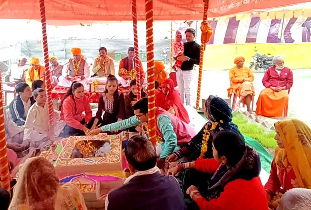 इससे पूर्व बालक को अन्न खिलाना वैज्ञानिक रूप से भी निषेध है। ऋषियों ने सभी संस्कारों की जो अवधि निश्चित की है उसी अवधि में सभी संस्कार होने चाहिए। शिवनारायण आर्य व धर्मवीर आर्य ने ईश्वर भक्ति के गीत सुनाएं। उदिता आर्या ने ऋषि दयानंद की महिमा के गीत गाकर उनको गुणानुवाद किया। आचार्य विवेक ने यज्ञ की सम्पूर्ण विधि को सम्पन्न कराया। यजमान हरिओम शास्त्री व रेनू आर्या ने सपरिवार यज्ञ में आहुतियां डाली तथा भण्डारे का आयोजन कर साधु संतों व कल्पवासियों को ऋषि प्रशाद वितरित किया। कार्यक्रम में बाबा जमुना दास, दलवीर शास्त्री, सुरेश चंद्र वर्मा, शिशुपाल आर्य, उदयराज आर्य, रत्नेश द्विवेदी, अर्चना द्विवेदी, उपासना कटियार, ऋतु आर्या, नीलम राजपूत, उदिता आर्या आदि उपस्थित रहे।
