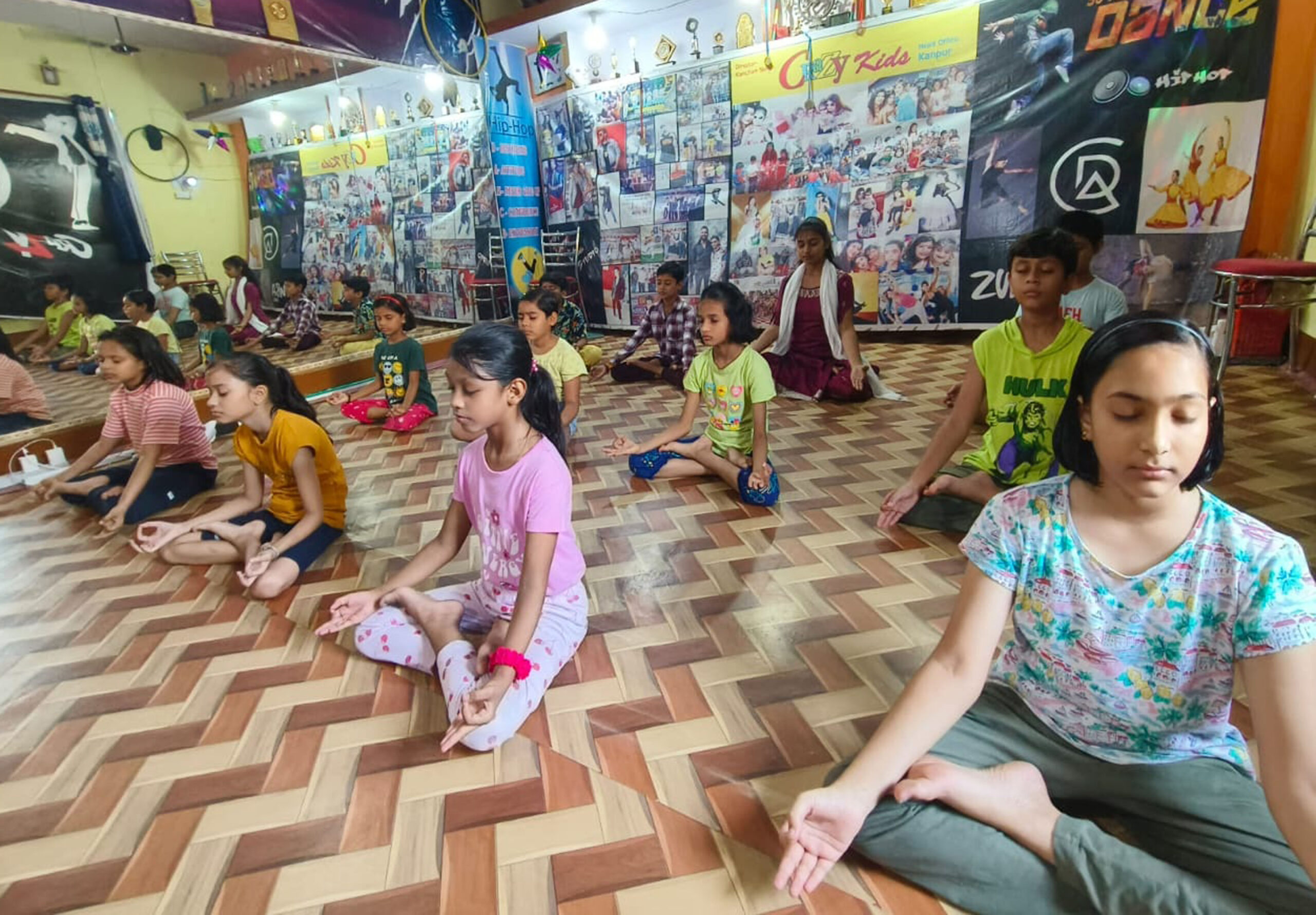 क्रेजी डांस अकादमी में बच्चों ने किया योगाभ्यास