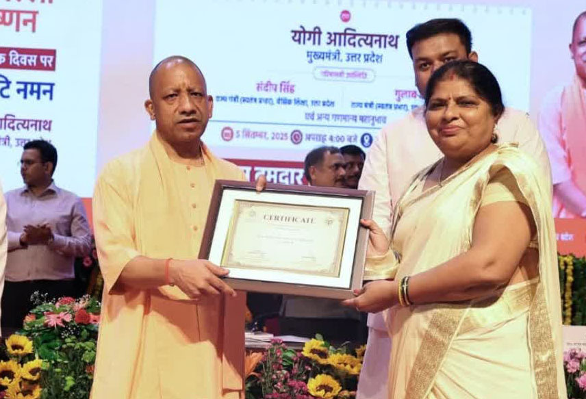 राजधानी लखनऊ में शुक्रवार को शिक्षक दिवस के अवसर पर शिक्षक सम्मान समारोह का आयोजन लोकभवन में किया गया। मुख्यमंत्री योगी आदित्यनाथ ने परिषदीय विद्यालयों के 66 व माध्यमिक शिक्षा विभाग के 15 शिक्षकों को राज्य अध्यापक पुरस्कार देकर सम्मानित किया। मुख्यमंत्री राजकीय माध्यमिक विद्यालयों में गुणवत्तापूर्ण शिक्षा व मॉनिटरिंग के लिए टैबलेट, विद्यालयों में स्मार्ट क्लास की स्थापना के लिए प्रधानाचार्यों को टैबलेट व प्रमाण पत्र भी वितरित किए गए। सीएम योगी ने कहा कि बेसिक शिक्षा ने बाल वाटिका का एक नया रूप लाया है। इस सत्र में पांच हजार से अधिक बाल वाटिकाएं शुरू हो चुकी हैं। यहां पढऩे वाले बच्चों को मुख्यमंत्री पोषण से जोडऩे जा रहे हैं। बच्चा स्वस्थ होगा तो देश का भविष्य भी सुधरेगा। देश के अंदर सबसे ज्यादा प्रगति यूपी की बेसिक शिक्षा ने किया है। ये अलग-अलग संस्थाओं के सर्वे में साबित हो चुका है। 60 लाख से अधिक बच्चे यूपी के परिषदीय स्कूलों में पढ़ाई कर रहे हैं।
