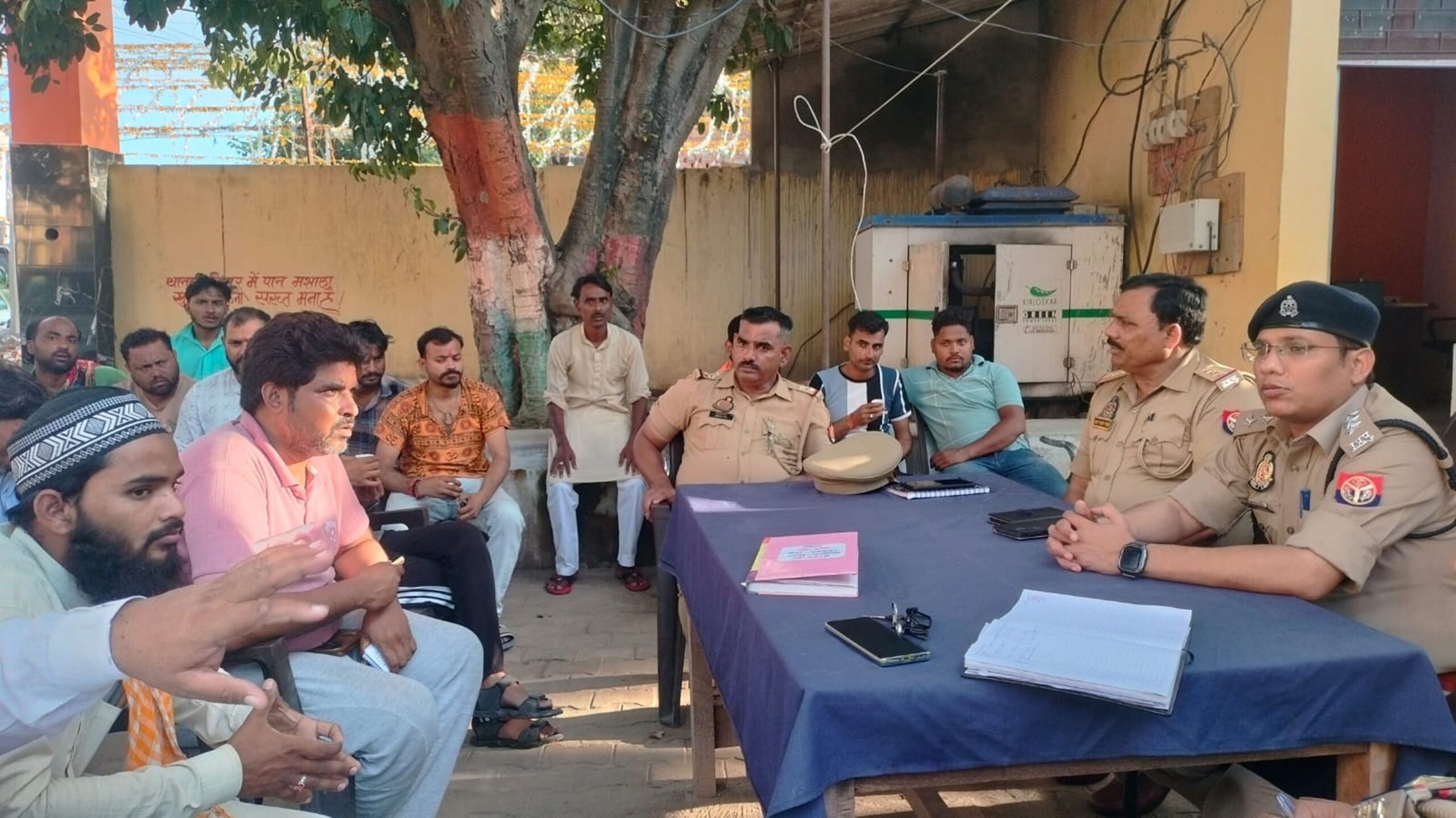 नवाबगंज थाना क्षेत्र के कस्बा नवाबगंज स्थित थाना प्रांगण पर गुरुवार को थाना अध्यक्ष अवध नारायण पांडे तथा क्षेत्राधिकारी मोहम्मदाबाद अजय वर्मा ने कल होने वाले त्यौहार बारा रवी उल अव्वल तथा अनंत चतुर्दशी के मद्देनजर मोहम्मदाबाद पीस कमेटी की बैठक बुलाई। जिसमें सभी ने आवश्यक सुझाव दिए तथा सभी को मिलजुल कर सभी त्यौहार मनाने की अपील की गयी। अराजकता फैलाने वालों को किसी भी कीमत पर बर्दाश्त नहीं किया जाएगा। इसलिए कोई भी व्यक्ति अराजकता ना फैलाएं। वहीं कल बारा रवी उल अव्वल के जुलूस को लेकर थाना अध्यक्ष ने सभी लोगों को डीजे पर दो साउंड लगाकर और मर्यादा में रहकर बजाने की बात कही। वहीं अगले दिन अनंत चतुर्दशी के दिन गणेश विसर्जन पर भी सभी लोगों को डीजे को मर्यादा में बजाने की बात कही और यह भी बताया कि जो भी व्यक्ति अमर्यादित तरीके से पेश आएगा तो उसके साथ उसी लहजे में पेश आया जाएगा और कड़ी कार्रवाई करते हुए गैंगस्टर की कार्रवाई भी की जा सकती है। इसलिए सभी लोग भाईचारे के साथ त्यौहार मनाएं और एक दूसरे को सहयोग करें। इस मौके पर क्षेत्राधिकारी मोहम्मदाबाद अजय वर्मा, थाना प्रभारी निरीक्षक अवध नारायण पांडे, उप निरीक्षक रमाशंकर पांचाल, उप निरीक्षक अभिलाष सिंह, उप निरीक्षक कमलेश कुमार, उप निरीक्षक हेमंत कुमार, कस्बा इंचार्ज गिरीश चंद्र तथा हाफिज अकरम राजा खान, हाफिज शोएब खान, हाफिज आरिफ राजा खान, आदिल खान, इमरान खान, गनीपुर मस्जिद के सदर वली मोहम्मद, सुरेश कुमार, अरविंद प्रताप, गौरव सक्सेना, दुष्यंत कश्यप, डॉक्टर पवन कश्यप, जिला पंचायत सदस्य यशवीर आर्य, कमल भारद्वाज, आदेश राठौर, योगेंद्र सिंह, सुदेश राठौर आदि बैठक में मौजूद रहे।