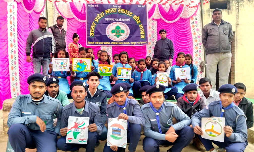 फर्रुखाबाद, समृद्धि न्यूज। 193 विधान सभा क्षेत्र अमृतपुर के विलासी देवी इंटर कॉलेज देवसनी में 14वें राष्ट्रीय मतदाता दिवस के उपलक्ष में चित्रकला,भाषण और निबंध प्रतियोगिताएं आयोजित की गई। जिसमें स्काउट गाइड के छात्र-छात्राओं ने बढ़-चढक़र हिस्सा लिया तथा लोकतंत्र के पावन पर्व के उपलक्ष में अपने-अपने विचारों को चित्रकला, भाषण और गायन के माध्यम से व्यक्त किया। चित्रकला प्रतियोगिता में अंशिका प्रथम, विजेंद्र सिंह द्वितीय और नितिन तृतीय स्थान पर रहे। गायन प्रतियोगिता में वंदना प्रथम, साधना द्वितीय और आरजू तृतीय स्थान पर रहे। भाषण प्रतियोगिता में सुदेश प्रथम, कु0 ज्योति द्वितीय और कमलेश कुमार ने तृतीय स्थान प्राप्त किया। इस अवसर पर माखन लाल राजपूत प्रबंधक, सुनील कुमार प्रधानाचार्य, अवधेश कुमार, सतलेश कुमार, बृजभान सिंह, ओमवीर सिंह, आलोक कुमार यादव, गौरी राजपूत, शोभित यादव आदि मौजूद रहे।