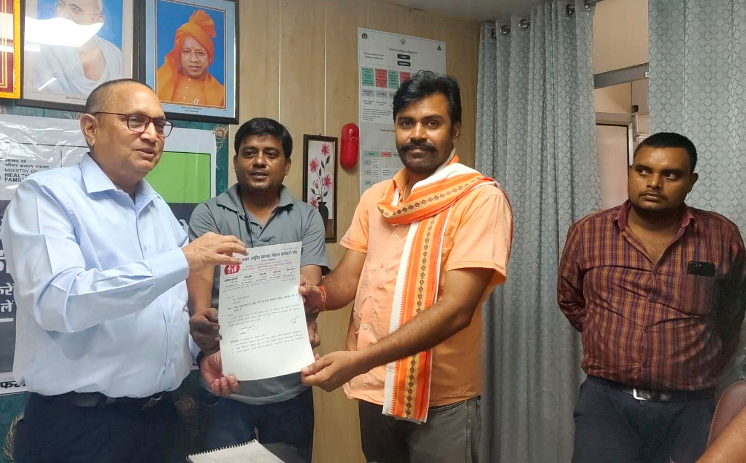 फर्रुखाबाद, समृद्धि न्यूज। राष्ट्रीय स्वास्थ्य मिशन कर्मचारी संघ ने मांगों को लेकर मुख्य चिकित्साधिकारी को ज्ञापन सौंपा। ज्ञापन में दर्शाया कि प्रदेश नेतृत्व के आवाह्न पर जनपद के समस्त अधिकारी व कर्मचारी अपनी मांगों को लेकर ७ अगस्त बुधवार को जनपद मुख्यालय छोडक़र लखनऊ के लिए प्रस्थान करेंगे। इस संबंध में जिलाध्यक्ष अभिषेक बाजपेयी ने मंत्री संजय बाथम के साथ सीएमओ कार्यालय पहुंचकर मुख्य चिकित्साधिकारी को ज्ञापन सौंपा। इस संबंध में सीएमएस लोहिया अस्पताल को भी जानकारी दे दी गई है। पिछले दो सप्ताह से संविदा कर्मचारी अपनी मांगों को लेकर प्रदर्शन कर रहे थे। समाधान न होने पर प्रदेश भर के संविदा कर्मचारी लखनऊ धरने में भाग लेंगे। जनपद फर्रुखाबाद के भी संविदा कर्मचारी लखनऊ जाकर मांगों को लेकर प्रदर्शन करेंगे।