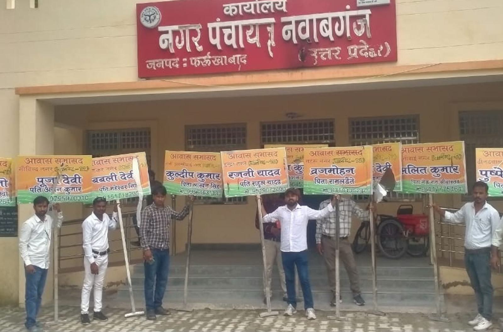 नवाबगंज, समृद्धि न्यूज। नगर पंचायत में सभासदों के दरवाजे पर लगने वाले बोर्ड को लेकर आज 16 में से 12 सभासद अपने-अपने बोर्ड उखाड़कर नगर पंचायत कार्यालय पहुंचे। उनका कहना था कि बोर्ड में कई लोगों के नाम गलत है और घटिया किस्म के बोर्ड लगाए गए हैं। जिसके चलते नगर पंचायत में शुरू हुए भ्रष्टाचार को लेकर उनकी मुहिम शुरू हुई है। सभासदों ने एक राय में कहा की चेयरमैन मनमानी कर रहे हैं और सभासदों की विकास कार्यों के नाम पर कोई राय नहीं ले रहे हैं। साथ ही शपथ ग्रहण के बाद अब तक केवल एक बैठक कराई गई है। इसके बाद वह अधिशासी अधिकारी त्रिवेंद्र कुमार के कार्यालय में पहुंचे और अब तक कराए गए कार्यों का आरटीआई द्वारा लेखाजोखा मांगा गया। बोर्ड के संबंध में अधिशासी अधिकारी त्रिवेंद्र कुमार ने बताया कि उनके संज्ञान में बोर्ड नहीं लगाए गए और ना ही कोई टेंडर जारी किया गया है बोर्ड कैसे लग गए हैं यह अध्यक्ष से पूछकर जांच कराई जाएगी। सभासदों में पुष्पेंद्र यादव, राहुल यादव, पूजा राठौर, पवन कुमार, आरती देवी, रंजीता बानो, रामवती देवी, बबली देवी, कुलदीप राजपूत, ललित श्रीवास्तव, बृजमोहन, शीतल देवी अपने-अपने बोर्ड उखाड़कर नगर पंचायत पहुंचे थे। वहीं सभासदों ने कहा कि अध्यक्ष को सभासदों से मिलकर विकास कार्य कराये चाहिए। वह सभासदों के बिना संज्ञान में लिये ही विकास कार्य करवा रहे हैं। जो ठीक नहीं है।