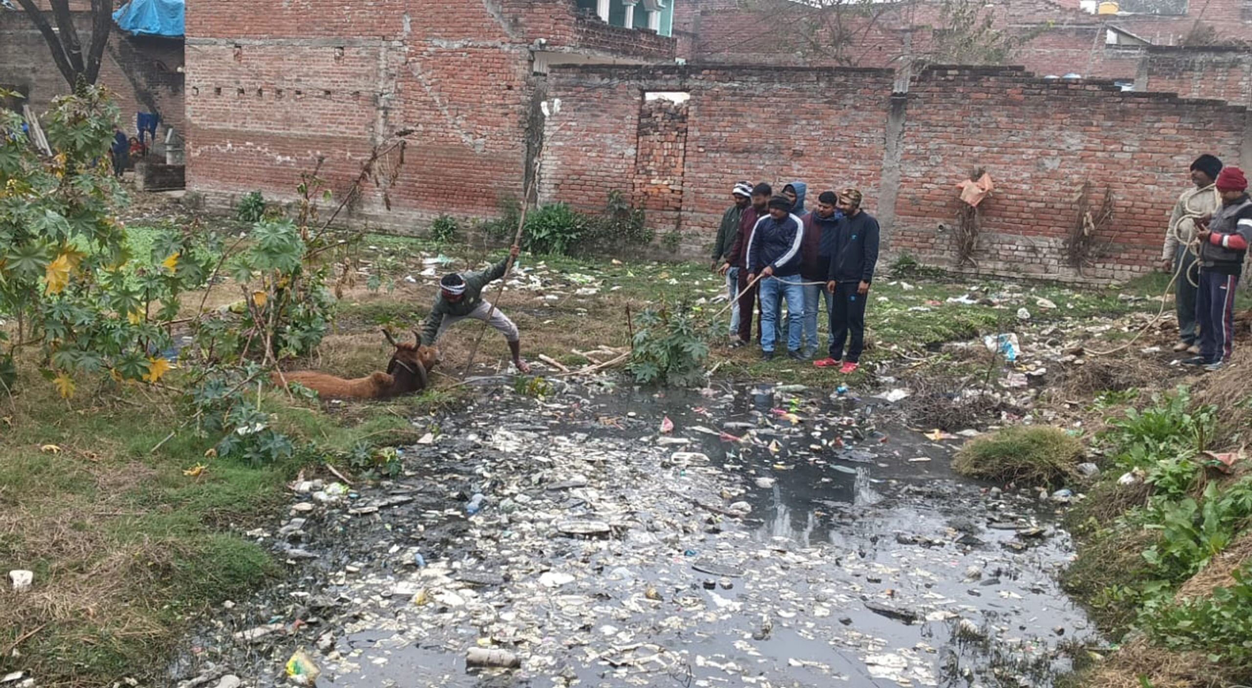 नवाबगंज, समृद्धि न्यूज। बुधवार को दोपहर बाद नगर के मोहल्ला बरतल में स्थित एक तालाब के दलदल में अचानक एक गया फंस गई। जिसे निकलने के लिए मोहल्लेवासियों ने काफी मेहनत की, लेकिन वह नहीं निकल सकी। सूचना मिलने पर सभासद प्रतिनिधि अनिल शाक्य मौके पर पहुंचे और उन्होंने इसकी जानकारी अधिशासी अधिकारी को दी। इसके बाद कल्लू ठाकुर, अम्बुज भारद्वाज, अजित शर्मा, अंकित राजपूत सहित कई सफाई कर्मचारी घटनास्थल पर पहुंचे। इसके बाद सूचना नगर पंचायत कार्यालय में दी गयी। सूचना मिलते ही नगर पंचायत के कर्मचारी मौके पर पहुंचे और तालाब से गाय को निकालने के लिए मशक्कत करने लगे।