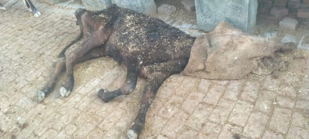 कस्बे से सटे दुनाया रोड पर बनी नगर पंचायत की गौशाला में चल रहे फर्जीवाड़े के कारण गौवंशों को भर पेट चारा नहीं मिल पाता। साफ-सफाई न रहने के कारण गंदगी के चलते गौवंशों में संक्रमण फैलने की संभावना बनी रहती है। इसी दुर्दशा के चलते मंगलवार को सुबह एक गाय की मौत हो गई और एक मरणासन तड़प रही है, लेकिन न ही मृत गाय के शव को उठवाया गया और न ही तड़पती दूसरी गाय जिसे उपचार की आवश्यकता है को अस्पताल पहुंचाया गया। गौशाला में 67 गौवंश है और सभी दुर्दशा के शिकार है। इनकी न तो कोई सुध लेने वाला है और न इनकी बीमारी की किसी को चिंता है।