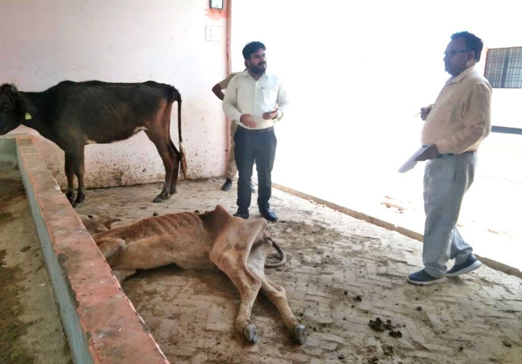 जानकारी के अनुसार विकास खंड अधिकारी गगनदीप सिंह ने शुक्रवार को क्षेत्र की गौशालाओं का निरीक्षण किया। निरीक्षण के दौरान कडिय़ुली गौशाला में विकास खंड अधिकारी को 2 गोवंश मृत मिले तथा तथा 7 गोवंश गंभीर रूप से बीमार मिले। उनके भी शीघ्र ही मरने की आशंका जतायी। गोवंश को ना ही हरा चारा व भूसा खाने को मिल रहा था और ना ही हरे चारे की व्यवस्था थी और ना ही दाना आदि की व्यवस्था। विकास खंड अधिकारी के मुताबिक गौशाला में जो दाने की बोरी रखी थी वह खोली ही नहीं गई। थोड़ा बहुत सूखा भूसा ही डाल दिया जाता है। जिससे गोवंश सिर्फ जिन्दा रह सकें। इसके अलावा कोई डाक्टर आदि भी बीमार गोवंश का इलाज करने नहीं जाता है। जिससे बीमार गोवंश इलाज के अभाव में दम तोड़ रहे हैं। विकास खंड अधिकारी ने इसकी जानकारी जब उच्चाधिकारियों को दी, तो उनका भी पारा चढ़ गया और तुरन्त संबंधितों पर कार्यवाही करने की बात कही। वहीं विकास खंड अधिकारी ने साहबगंज गौशाला का निरीक्षण किया। जिसमें 3 गोवंश मृत पाए गए तथा 5 गोवंश गंभीर हालत में बीमार पाए गए और उनके पास चारे आदि की भी कोई व्यवस्था नहीं थी। जिस पर विकास खंड अधिकारी ने ग्राम प्रधान व ग्राम सचिव से खासी नाराजगी जताई दोनों गौशालाओं के निरीक्षण में बेहद गंदगी पाई गई जबकि विकास खंड अधिकारी के मुताबिक विकास खंड कार्यालय क्षेत्र में तैनात ग्राम सफाई कर्मचारियों को गौशाला में भेजकर सफाई कराई जाती है उसके बावजूद भी बेहद गंदगी पाई गई। जिसमें ग्राम प्रधान, ग्राम सचिव तथा पशु चिकित्सा सभी दोषी पाए गए। विकास खंड अधिकारी ने फोन द्वारा पशु चिकित्सा विभाग में जानकारी दी तो सूचना पाकर तुरंत मौके पर पहुंचे मवेशी के डॉक्टर और गोवंशों का इलाज करने लगे।