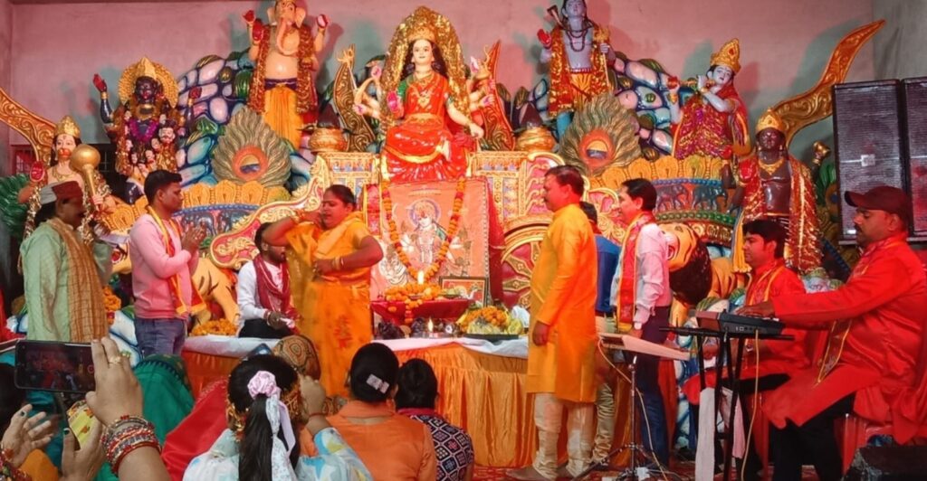 फर्रुखाबाद, समृद्धि न्यूज। देवी जागरण में भजनों पर भक्त अपने आपको रोक नहीं पाये और जमकर थिरके, मां के जयकारों से कार्यक्रम स्थल गूंज उठा। भोलेपुर बेवर रोड कोल्ड स्टोरेज के सामने स्थित प्रशांत कटियार अध्यापक के प्रतिष्ठान पर भव्य देवी जागरण का आयोजन हुआ। पांडाजी एण्ड पार्टी कासगंज के द्वारा भजन प्रस्तुत किये। हनुमान जी, गणेश जी आदि झांकियों का आयोजन किया गया। मां के भजनों पर भक्त जमकर थिरके। कार्यक्रम स्थल मां के जयकारों के साथ गूंज उठा। कार्यक्रम के आयोजक प्रशांत कटियार व उनकी धर्मपत्नी ने पांडाजी एण्ड पार्टी के संचालक प्रवीण कुमार तूफानी को अंग वस्त्र व हनुमान जी का चित्र देकर सम्मानित किया, साथ ही आये अन्य कलाकारों का भी सम्मान किया। देवी माता के जागरण को विराम के दौरान आरती व प्रसाद वितरण के अलावा भण्डारे का आयोजन किया गया। बड़ी संख्य में बढ़-चढ़कर भक्तों ने भाग लिया।
