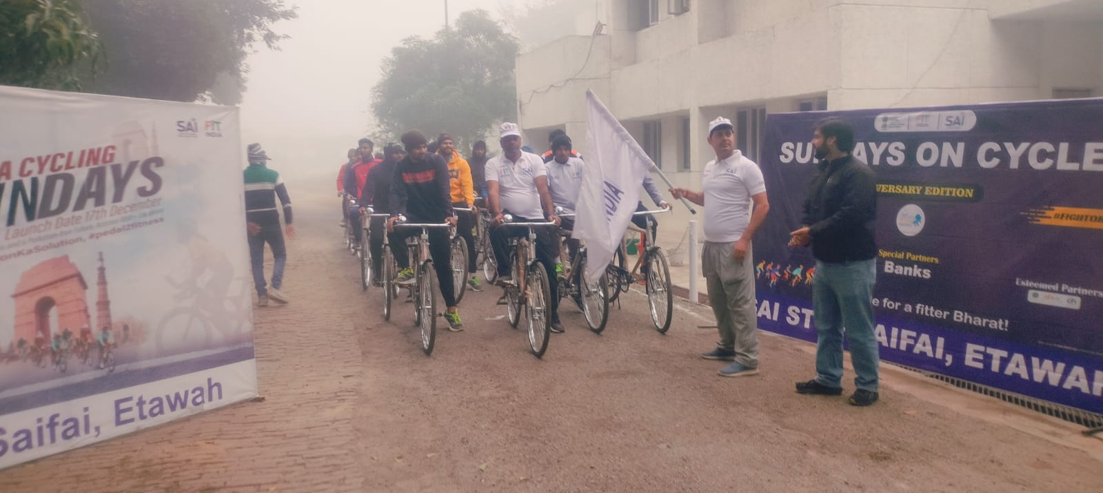 फिट इंडिया अभियान में सैफई की सड़कों पर उतरे साइकिल सवार