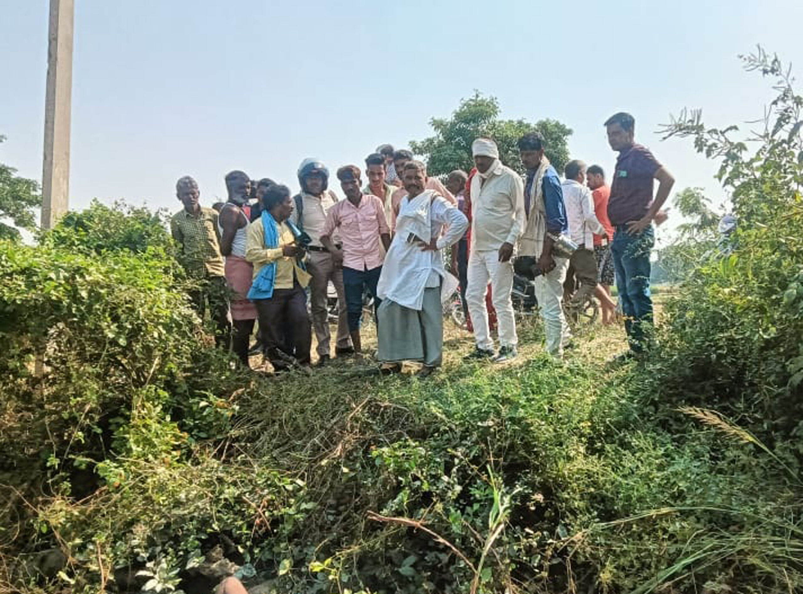 सडक़ के किनारे खेत में पड़ा मिला अज्ञात वृद्ध का शव