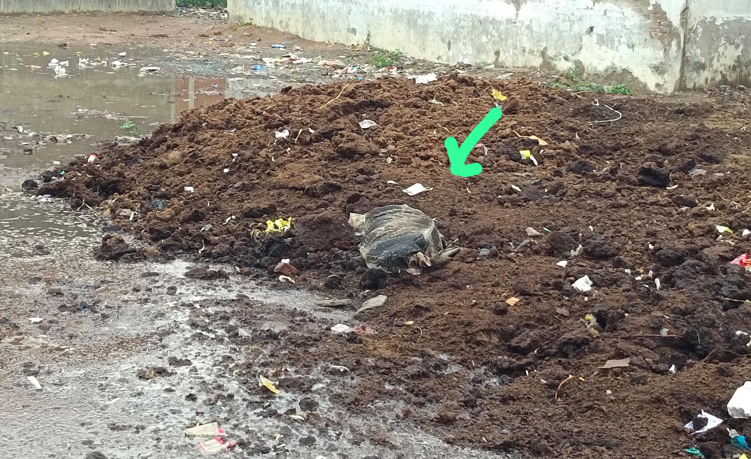 भूसा मण्डी में तीन दिन से कूड़े के ढेर में मरी पड़ी बछिया, क्षेत्र में फैली बदबू