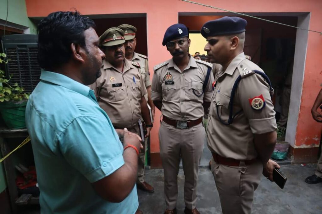 पुत्री व पत्नी घायल, पुलिस अधीक्षक, एएसपी, सीओ व फॉरेंसिक टीम ने पहुंचकर की जांच पड़ताल कानपुर की एक कम्पनी पर मक्का के 40 लाख रुपये हड़प लेने से मृतक था तनाव में