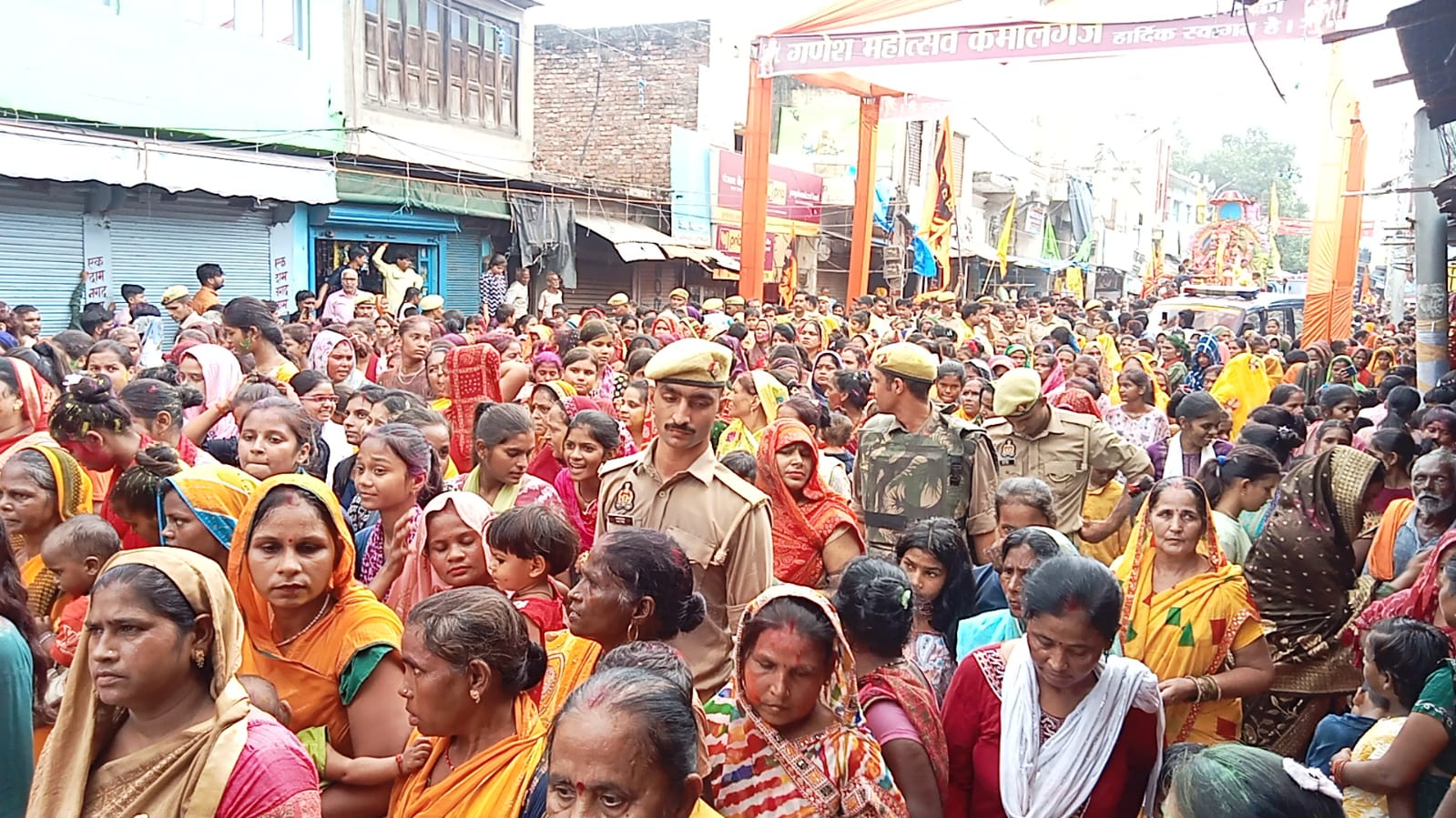 कमालगंज, समृद्धि न्यूज। शनिवार को भगवान गजानन की विसर्जन यात्रा धूमधाम से निकाली गयी। जनसैलाब इतना उमड़ा कि जगह कम पड़ गयी। भारी भीड़ के चलते रुट डायवर्जन किया गया था। वहीं सुरक्षा के मद्देनजर पुलिस बल साथ-साथ चल रहा था। देर शाम विसर्जन यात्रा पांचाल घाट गंगा तट पर पहुंची। जहां भगवान गजानन का विधि विधान से विसर्जन किया गया।