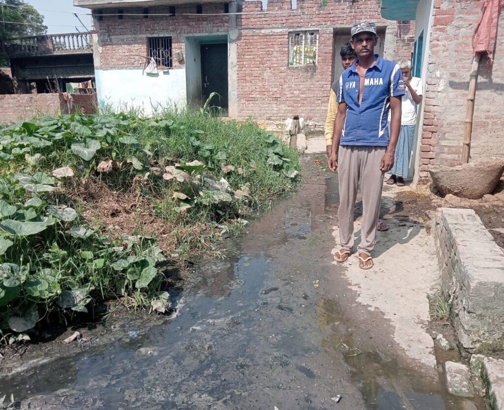 नाली का निकास न होने पर ग्राम गुर्जरपुर गहरवार की गलियों में फैली गंदगी
