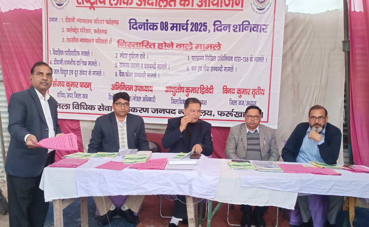 फर्रुखाबाद, समृद्धि न्यूज। जनपद न्यायाधीश विनय कुमार व जिला विधिक सेवा प्राधिकरण के सचिव/अपर जिला जज संजय कुमार ने मेला श्री रामनगरिया पांचाल घाट में जिला विधिक सेवा प्राधिकरण की ओर से संचालित लीगल एड क्लीनिक का भ्रमण किया। उनके द्वारा लीगल एड क्लीनिक पर उपस्थित पराविधिक स्वयंसेवक देवराज सिंह व संजय कुमार से विधिक सेवाएं दिए जाने के संबंध में जानकारी ली। परा विधिक स्वयं सेवक देवराज सिंह एवं संजय कुमार सिंह ने जनपद न्यायाधीश विनय कुमार, जिला विधिक सेवा प्राधिकरण के सचिव/अपर जिला जज संजय कुमार को विधिक सेवाओं के दिए जाने के संबंध में प्रचार प्रसार सामग्री वितरित कर जागरूकता कराया जाना तथा स्थाई लोक अदालत व 8 मार्च को होने वाले राष्ट्रीय लोक अदालत का प्रचार प्रसार किया जाना बताया गया है। जरूरतमंद लोगों के प्रार्थना पत्र लिखकर कार्यवाही हेतु संबंधित विभागों को भेजना एवं संबंधित मामलों के संबंध में नि:शुल्क सेवाओं हेतु जानकारी दिया जाना बताया गया। जनपद न्यायाधीश विनय कुमार व जिला विधिक सेवा प्राधिकरण के सचिव/अपर जिला जज संजय कुमार के द्वारा लीगल एड क्लीनिक पर बैठकर प्रचार प्रसार सामग्री एवं परा विधिक स्वयंसेवकों द्वारा रखे गए कर पंजिका का भी अवलोकन किया गया। इस मौके पर सीजीएम घनश्याम शुक्ला, जिला विधिक सेवा प्राधिकरण के कार्यालय प्रभारी राम सिंह मौर्य, शिवम चौधरी, राघवेंद्र आदि लोग उपस्थित रहे।