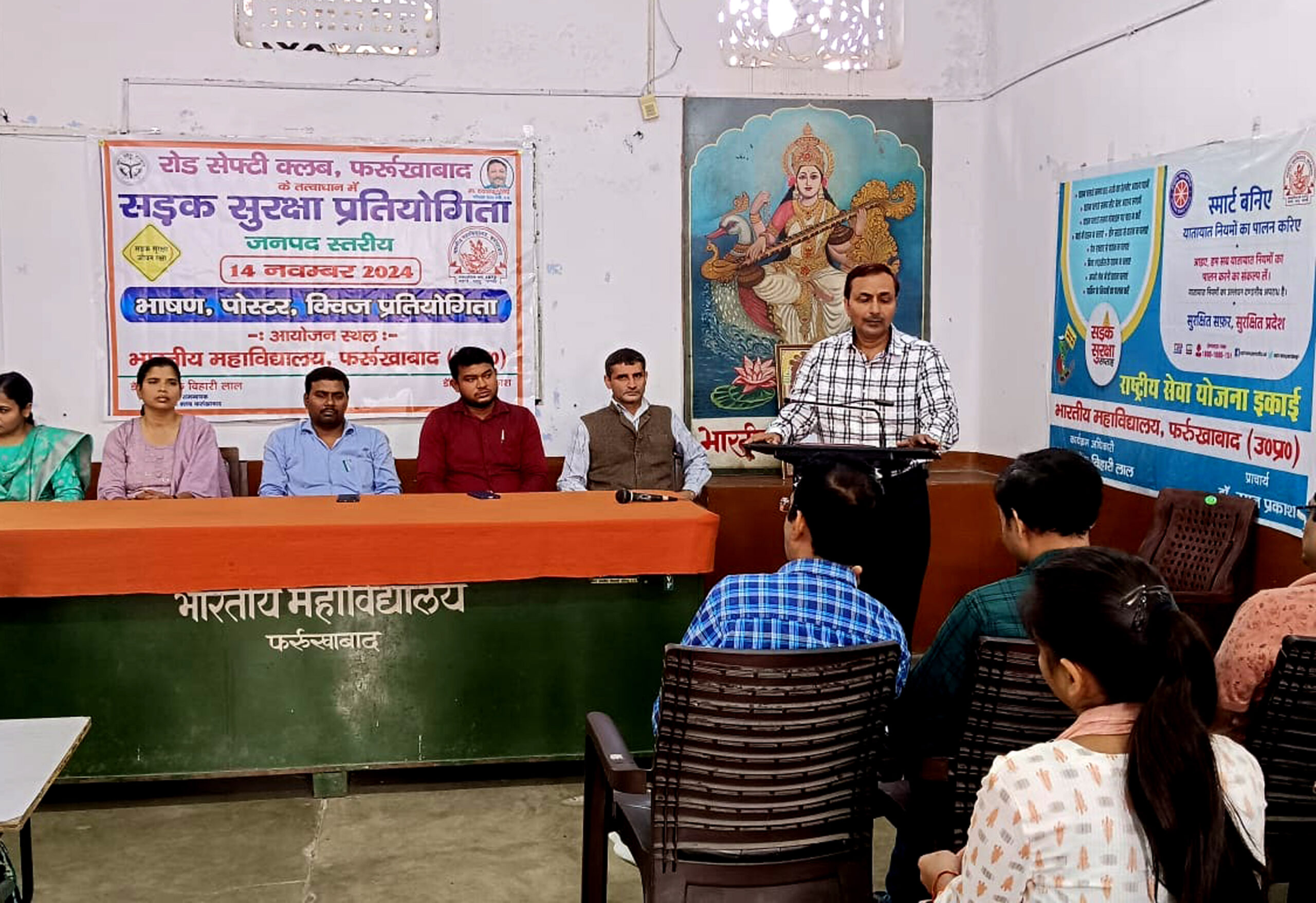 फर्रुखाबाद, समृद्धि न्यूज। रोड सेफ्टी क्लब के तत्वावधान में जनपद स्तरीय सडक़ सुरक्षा प्रतियोगिता का आयोजन गुरुवार को भारतीय महाविद्यालय में संपन्न हुआ। भाषण प्रतियोगिता में बद्री विशाल महाविद्यालय की छात्रा कु0 प्रिया वैष्णवी मिश्रा प्रथम स्थान पर, शिवम पांडे बद्री विशाल महाविद्यालय द्वितीय स्थान पर एवं रिनी चौहान एनकेपी डिग्री कॉलेज ने तृतीय स्थान प्राप्त किया। क्विज प्रतियोगिता में बद्री विशाल डिग्री कॉलेज के पवन पांडेय ने प्रथम स्थान प्राप्त किया। वहीं मान्यवर काशीराम राजकीय महाविद्यालय निनौआ के सूर्यकांत ने द्वितीय स्थान एवं बद्री विशाल पीजी कॉलेज के छात्र शिवम पांडेय ने तृतीय स्थान प्राप्त किया। पोस्टर प्रतियोगिता में अभिनव सिंह सागर आरपी पीजी कॉलेज कमालगंज ने प्रथम स्थान, एनएकेपी डिग्री कॉलेज की बीए द्वितीय वर्ष की छात्रा प्रिंसी सिंह ने द्वितीय स्थान एवं मान्यवर कांशीराम डिग्री कॉलेज निनौआ की छात्रा कुमारी बबली ने तृतीय स्थान प्राप्त किया। कार्यक्रम में लगभग 50 छात्रों ने प्रतिभाग किया। निर्णायक मंडल के रूप में एनकेपी डिग्री कॉलेज से डॉ0 प्रियंका वर्मा, डॉ0 रूपा देवी, मान्यवर कांशीराम डिग्री कॉलेज निनौआ से सैन्य विज्ञान के विभागाध्यक्ष डॉ0 प्रियांशु गुप्ता, वहीं बद्री विशाल डिग्री कॉलेज के शारीरिक शिक्षा विभाग प्रमुख डॉ0 सुरेंद्र सिंह, भारतीय महाविद्यालय के संस्कृत विभागाध्यक्ष डॉ0 संदीप द्विवेदी एवं शिक्षाशास्त्र विभागाध्यक्ष डॉ0 रमाशंकर पांडे रहे। निर्णायक मंडल द्वारा दिए गए निर्णय की घोषणा महाविद्यालय के प्राचार्य डॉ0 रमन प्रकाश ने की। विजयी प्रतिभागी अब मंडल स्तर की प्रतियोगिता में प्रतिभा करेंगे। प्रतियोगिताएं डॉ0 आलोक विहारी लाल जिला समन्वयक सडक़ सुरक्षा के नेतृत्व में कराई गई। इस अवसर पर अर्थशास्त्र विभागाध्यक्ष डॉ0 समीर गुप्ता आदि मौजूद रहे।