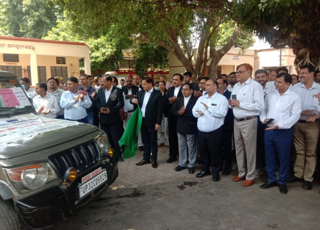 लोक अदालत के प्रचार वाहन को डीजे ने किया रवाना