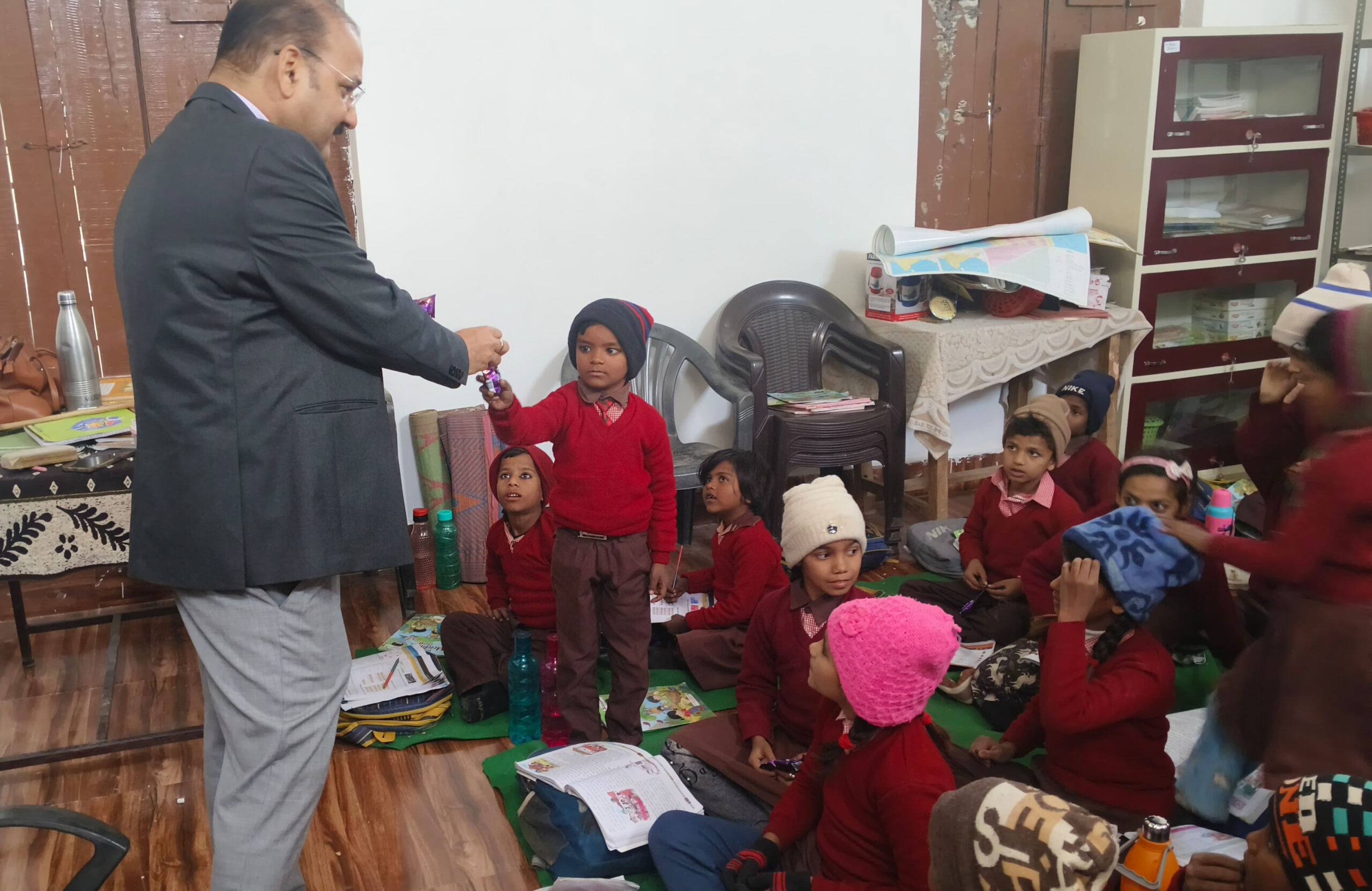 बच्चों से लगवाये गणित के सवाल, बांटी चॉकलेट