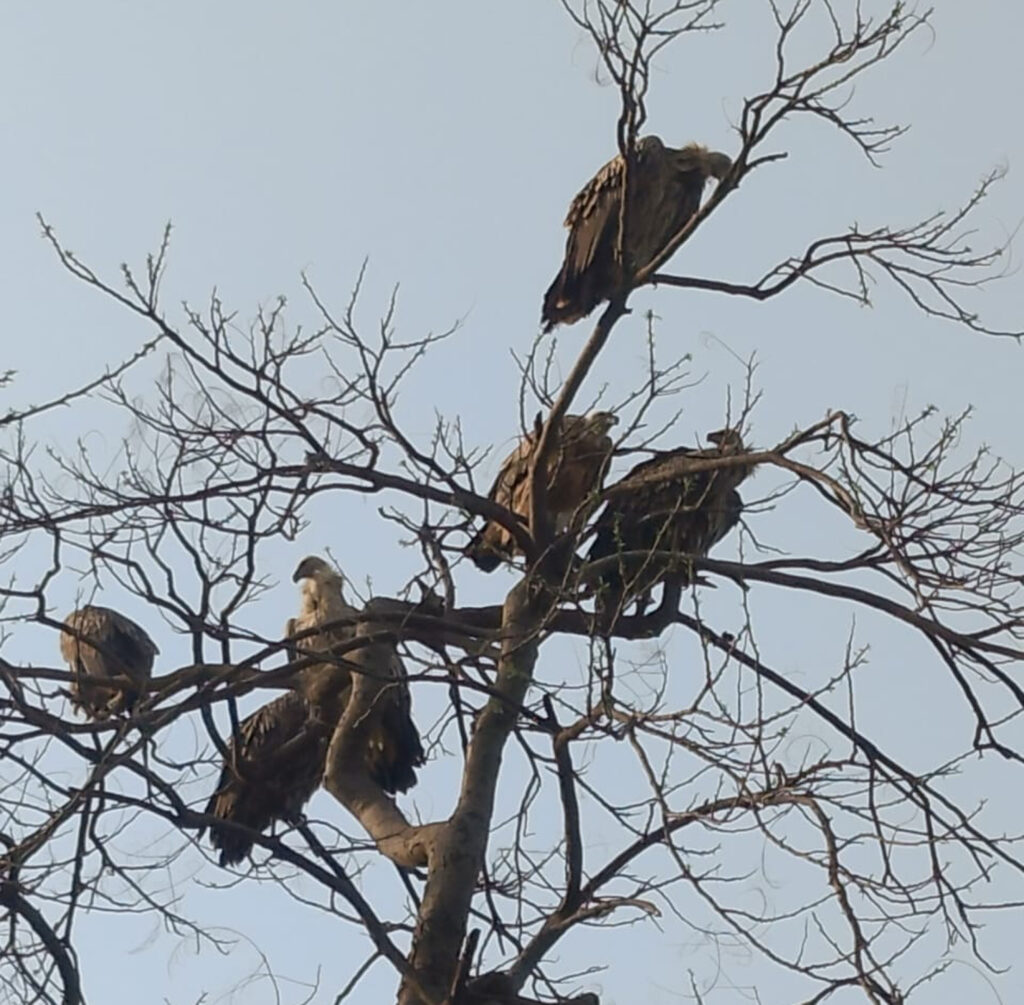 विलुप्त पक्षी गिद्धों को देखने के लिए दर्जनों ग्रामीण पहुंचे