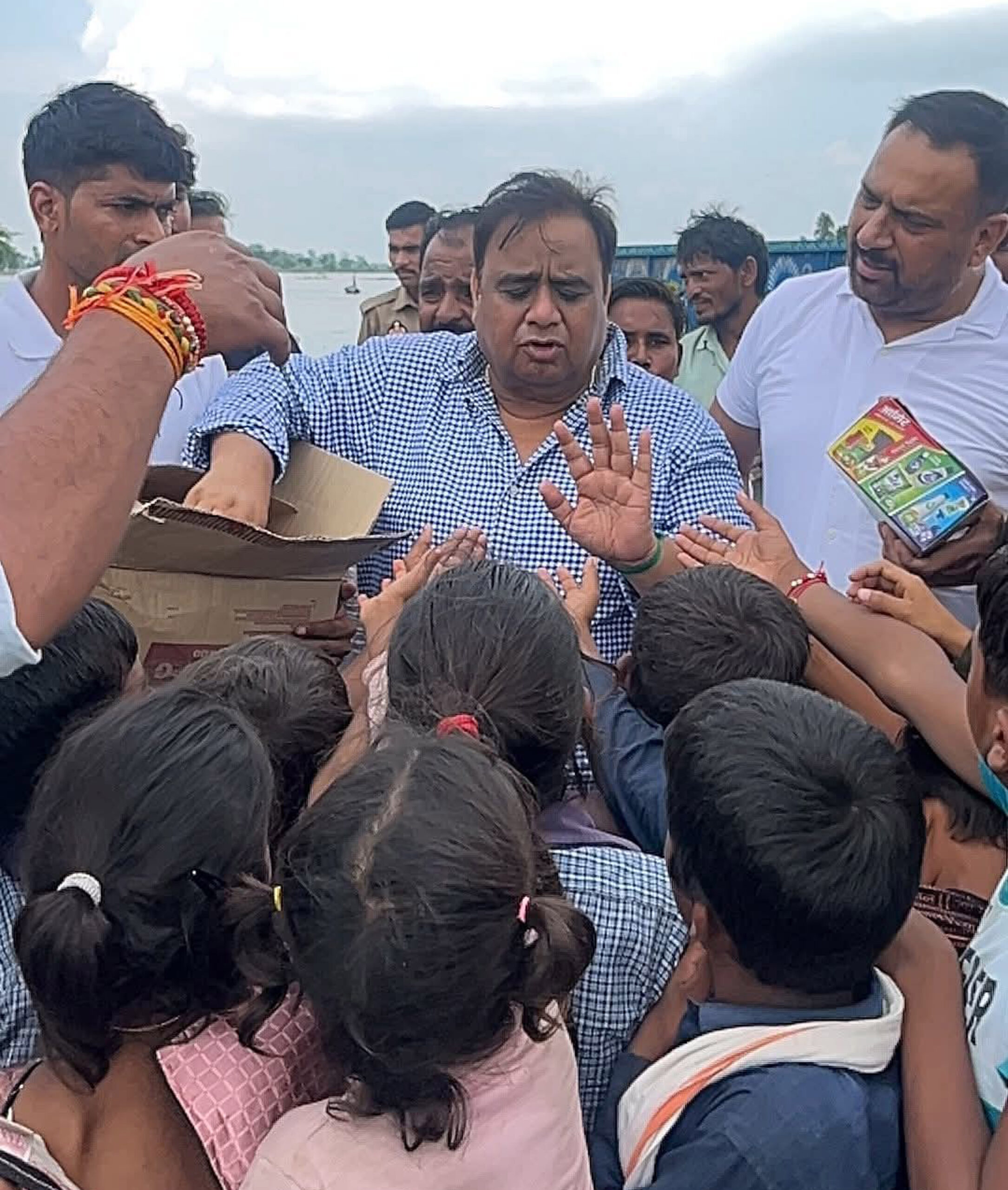 शमशाबाद के बाढग़्रस्त क्षेत्रों में ट्रैक्टर से खाद्य सामग्री लेकर पहुंचे डॉ0 जितेंद्र सिंह यादव