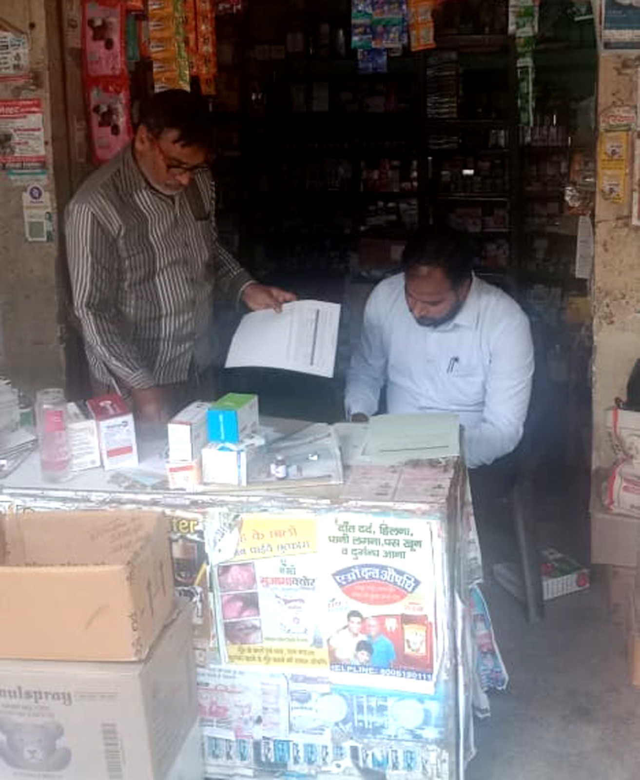ड्रग इंस्पेक्टर ने मेडिकल स्टोर पर छापे मारकर संदिग्ध दवा के सैंपल भरे