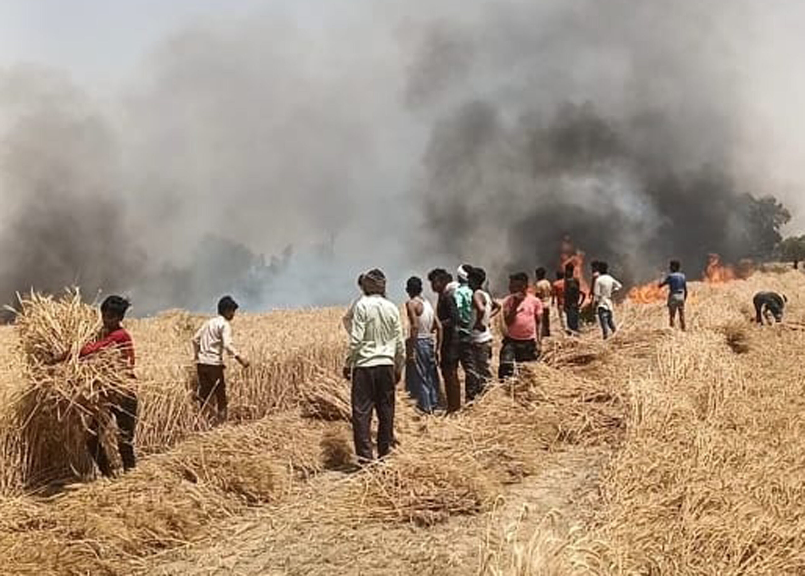 विद्युत विभाग की लापरवाही से हर वर्ष एचटी लाइन की भेंट चढ़ जाती सैकड़ों बीघा गेहूं की फसल