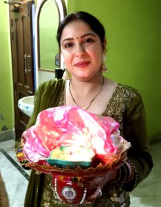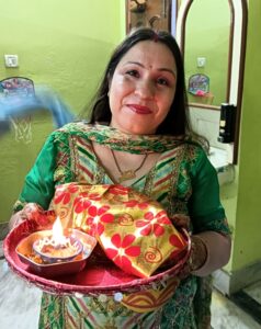 राधिका डवानी ने बताया दुल्हन के रुप में दूसरी बार व्रत रखा है। यह मौका जीवन में हर बार आये। पूरे दिन पूजा की थाली सजायी और पकवान बनाये और चंद्रमा की पूजा के साथ सबका आर्शीवाद लिया।
