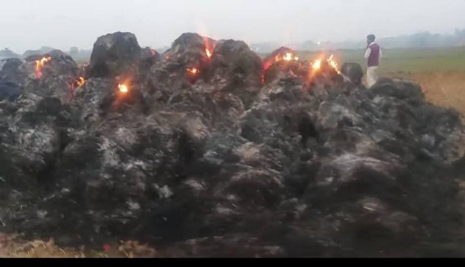 आठ बीघे धान के बोझ में अबूझ हाल में आग लगने से जल कर राख