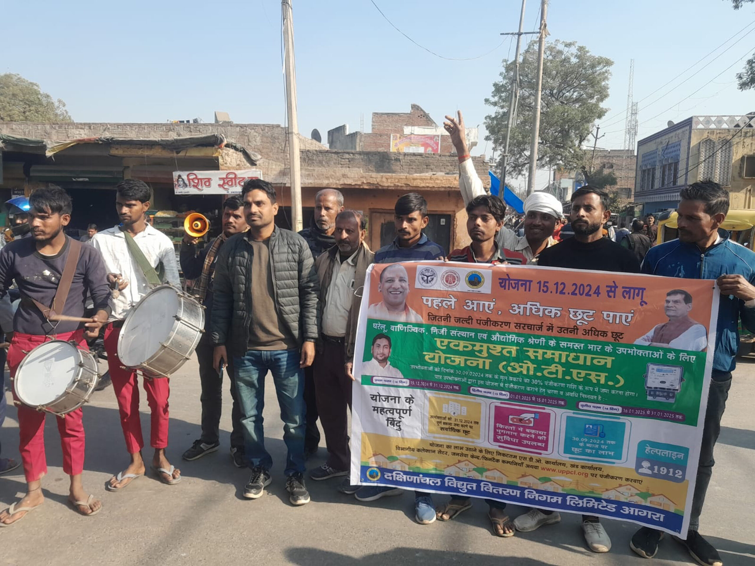 शमशाबाद, समृद्धि न्यूज। उत्तर प्रदेश सरकार हर बार की तरह इस बार भी शहरी तथा ग्रामीण क्षेत्र के विद्युत उपभोक्ताओं को बिजली के बकाया बिलों में राहत उपलब्ध कराए जाने के लिए एक मुक्त समाधान योजना का संचालन किया जा रहा है। इस योजना के तहत विद्युत उपभोक्ताओं को तीन चरणों में छूट का लाभ दिलाया जाएगा। वहीं बिजली के बिलों में 100 प्रतिशत अधिभार में छूट पाने के लिए उपभोक्ताओं को जागरुक किए जाने के लिए बिजली विभाग के जे0ई0 के नेतृत्व में एक जागरूकता अभियान के तहत रैली को निकाला गया। रैली में बिजली विभाग के जे0ई0 जुनैद आलम के नेतृत्व में कर्मचारियों ने ढोल नगाड़े के साथ नगर की गलियों में भ्रमण कर एक मुक्त समाधान योजना के अंतर्गत बिजली का बिल जमा कर छूट का लाभ उठाये जाने की अपील की। कर्मचारियों का कहना था सरकार की महत्वाकांक्षी योजना के तहत एक मुक्त समाधान योजना जिसके तहत बिजली का बकाया बिल जमा करने की अलग-अलग चरणों में व्यवस्था की गई और अलग-अलग अधिभार में छूट दिए जाने की बात कही गई। विद्युत उप केंद्र के जे0ई0 के साथ बिजली विभाग की टीम ने बुधवार को शमशाबाद की गलियों में भ्रमण किया। भ्रमण में बजते बैंड बाजे मुहल्ले के लोगों का ध्यान आकर्षित कर उन्हें बैनर में अंकित सरकार की योजनाओं की जानकारी से अवगत करा रहे थे। एक मुश्त समाधान योजना के अंतर्गत अधिभार में छूट से अवगत कराया जा था। रैली थाना चौराहे से गुजरती हुई मोहल्ला बाजार कला, बाजार मंडी, मोहल्ला गढ़ी, इमली दरवाजा सहित लगभग दो दर्जन से अधिक मोहल्ले से गुजरी। रैली में जे0ई0 जुनैद आलम, सलीम, शफीक खाँ, प्रमोद कुमार, अवधेश कुमार, मोहम्मद अयूब खाँ, देवेश कुमार, विक्रम सिंह, सादिक, देव सिंह सहित एक दर्जन कर्मचारी मौजूद रहे।