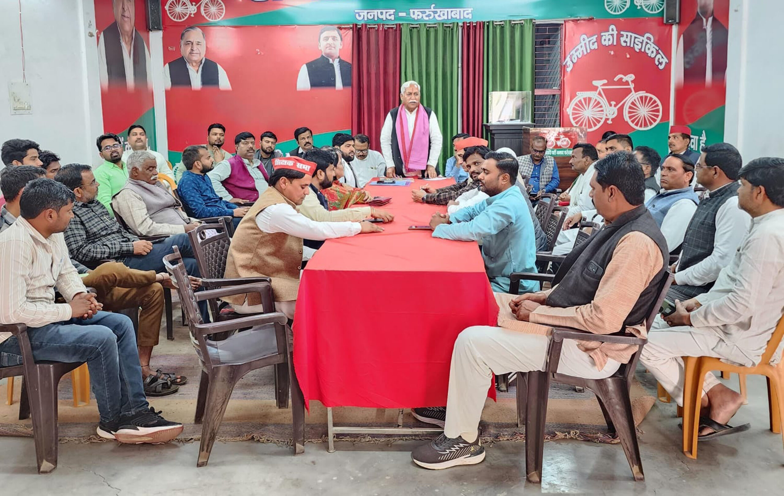 फर्रुखाबाद, समृद्धि न्यूज। जिला समाजवादी पार्टी के मासिक बैठक जिला कार्यालय पर जिलाध्यक्ष चंद्रपाल सिंह यादव की अध्यक्षता में संपन्न हुई। उन्होंने कहा कि जिला के फ्रंटल संगठन और विधानसभा प्रभारियों को निर्देश दिया कि सभी जुटे और पीडीए चौपालों को और अधिक बढ़ाये। उन्होंने कहा कि कार्यक्रमों में आयोजक लोगों का हर संभव सहयोग करें। पूर्व विधायक उर्मिला राजपूत ने कहा सभी लोगों का सहयोग पीडीए चौपाल को विशेष गति दे रहा है। पूर्व विधायक प्रताप सिंह यादव, विजय यादव, जेपी वर्मा आदि ने पीडीए चौपाल और पार्टी हित की चर्चा की। सर्वेश आंबेडकर की चाची के निधन व अरविंद सिंह के परिवार में निधन पर 2 मिनट का मौन रखा गया। संचालन इलियास मंसूरी ने किया। इस अवसर पर जिला प्रवक्ता विवेक यादव, सुमित शाक्य, बृजेश पाल, डॉ0 नवरंग सिंह, रामपाल सिंह यादव, रवि यादव, नीलम चौहान, मुजीबुल हसन, शिव शंकर शर्मा, रामविलास माथुर, सुलक्षणा सिंह, अमन सूर्यवंशी, इजहार खान, साजिद अली खान, अरविंद यादव, शिवम यादव, राजन यादव, अश्विनी यादव, मनोज यादव, भानु प्रताप सिंह, अरविंद यादव, पवन गौतम, रूक्मंगल सिंह, मुख्तार आलम, विकास कुमार, दीपू, मो0 अकलीम, कुदुष् खान, कुलदीप यादव, धीरेंद्र सिंह यादव, बलराम सिंह यादव, जीशान खान आदि लोग उपस्थित रहे। वहीं जिलाध्यक्ष चंद्रपाल सिंह यादव ने जिला महासचिव को निर्देश देते हुए कहा कि जिन लोगों ने नेता जी व राष्ट्रीय अध्यक्ष अखिलेश यादव की फोटो नहीं लगाई है, नोटिस भेज कर जवाब मांगे।