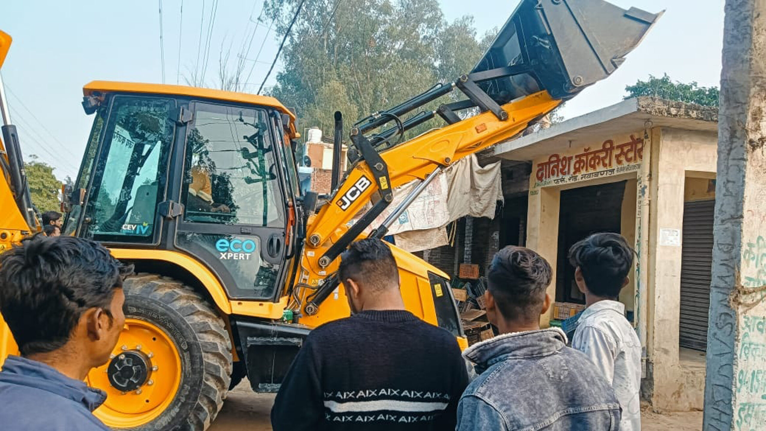 जानकारी के अनुसार नवाबगंज कस्बा नवाबगंज में बीते कई दिनों से अधिशासी अधिकारी के द्वारा अतिक्रमण हटाने की चेतावनी जारी की जा रही थी, लेकिन कस्बे के दुकानदारों ने अतिक्रमण को नहीं हटाया। जिससे आज शाम 4.00 बजे अधिशासी अधिकारी अखिलेश कुमार अपने कर्मचारियों के साथ बुलडोजर लेकर कस्बे में निकले। उन्होंने विकास खंड कार्यालय गेट के सामने से अतिक्रमण हटाओ अभियान शुरू कियाष। जो नाले के बाहर दुकान लगी थी जैसे सब्जी विक्रेता, कबाड़ विक्रेता तथा अन्य अतिक्रमणकारियों पर अधिशासी अधिकारी ने बुलडोजर चलवा दिया। जिस पर नगर पंचायत के समस्त कर्मचारियों तथा अधिशासी अधिकारी खुद सब्जी दुकानदारों की दुकान हटाते हुए देखे गए। वहीं गरीबों पर अधिशासी अधिकारी का जमकर हंटर चला, लेकिन जो लोग पक्के चबूतरे आदि बनाये हुए थे उनके नहीं तोड़े गए। उनको फिर अधिशासी अधिकारी ने अपना अतिक्रमण स्वयं हटा लेने की चेतावनी दी अन्यथा की स्थिति में वह जेसीबी से स्वयं हटवा देंगे। इस मौके पर अधिशासी अधिकारी अखिलेश कुमार, नगर पंचायत लिपिक केतांशु गंगवार, अंबुज भारद्वाज तथा नगर पंचायत के समस्त कर्मचारी बुलडोजर मशीन के साथ अतिक्रमण हटाते हुए देखे गये।