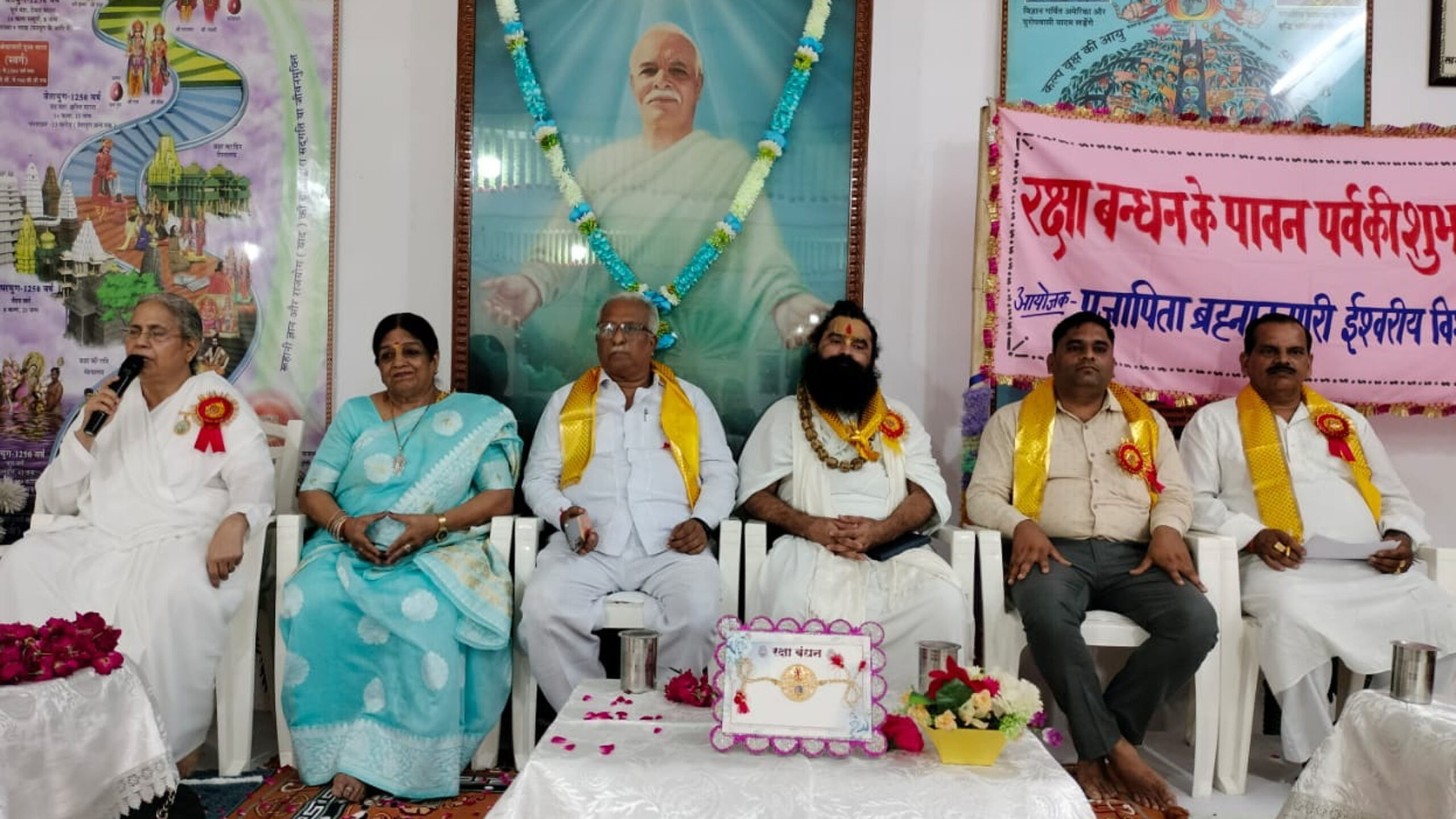 बी0के0 नीलम बहन एवं बी0के0 गिरिजा बहन सभी मंचासीन अतिथियों का बैज लगाकर व पटका पहनाकर स्वागत किया। वैष्णवी मेहरोत्रा ने स्वागत नृत्य प्रस्तुत किया। राधिका ने सभी का धन्यवाद ज्ञापित किया। पूर्व एआरटीओ अनिल त्रिपाठी ने कहा कि अपने जीवन को श्रेष्ठ बनाने वाले तथ्यों एवं विकल्पों को ग्रहण करके आये। उन्होंने कहा कि हर वस्तुत में विशेष गुण होता है वह श्रेष्ठ बनाता है। केंद्र संचालिका बीके मंजू बहन ने कहा कि रक्षाबंधन अध्यात्मिक रहस्य से अवगत कराता है। सूत्र बांधने की रस्में शुद्ध धार्मिक ही है। साथ ही संकल्प का बोध कराया। उसे कलाई में सूत्र कलावा को बांधते है। सतयुग, त्रेतायुग में इसका स्वाभाविक व्यवहारिक स्वरूप होता है। द्वापर-कलियुग में पाम्परागत रूप् में मनाते है। प्राचार्य संजीव कुमार यादव ने कहा कि यह पर्व बहनों की रक्षा के लिए नहीं बल्कि वीरांगना बहनों के बलिदान का भी है। जिन बहनों के छोटे भाई होते है वह अपनी बहन की रक्षा कैसे करें इसको भी दर्शाता है इसलिए इस पर्व का और भी महत्व है। डा0 मिथलेष अग्रवाल ने कहा कि त्योहार ही हमें हमारी परम्पराओं एवं संस्कृति को जीवित रखते है। ईश्वरदास महाराज ने कहा कि यह पर्व केवल राखी बांधने, बधवाने, मिठाई खाने का पर्व नहीं है। आज के समय को देख रहे है कि वर्तमान समय नारी को अब खुद को ही काली दुर्गा बनाने की आवश्यकता है। दिन प्रतिदिन कोई न कोई बहनों के अत्याचार की घटना को सुनकर हृदय विदीर्ण हो रहा है। दिन प्रतिदिन बहनों के शील सदाचार का हरण हो रहा है। हमें आज इस पर्व पर बहनों के शील सदाचार की रक्षा का संकल्प करने का संकल्प ले। तब ये दिन ये पर्व सार्थक होगा। कार्यक्रम में बहनों ने राखी बांधी। इस मौके पर संजय गर्ग, बीके पूनम बहन सहित बड़ी संख्या में लोग मौजूद रहे।