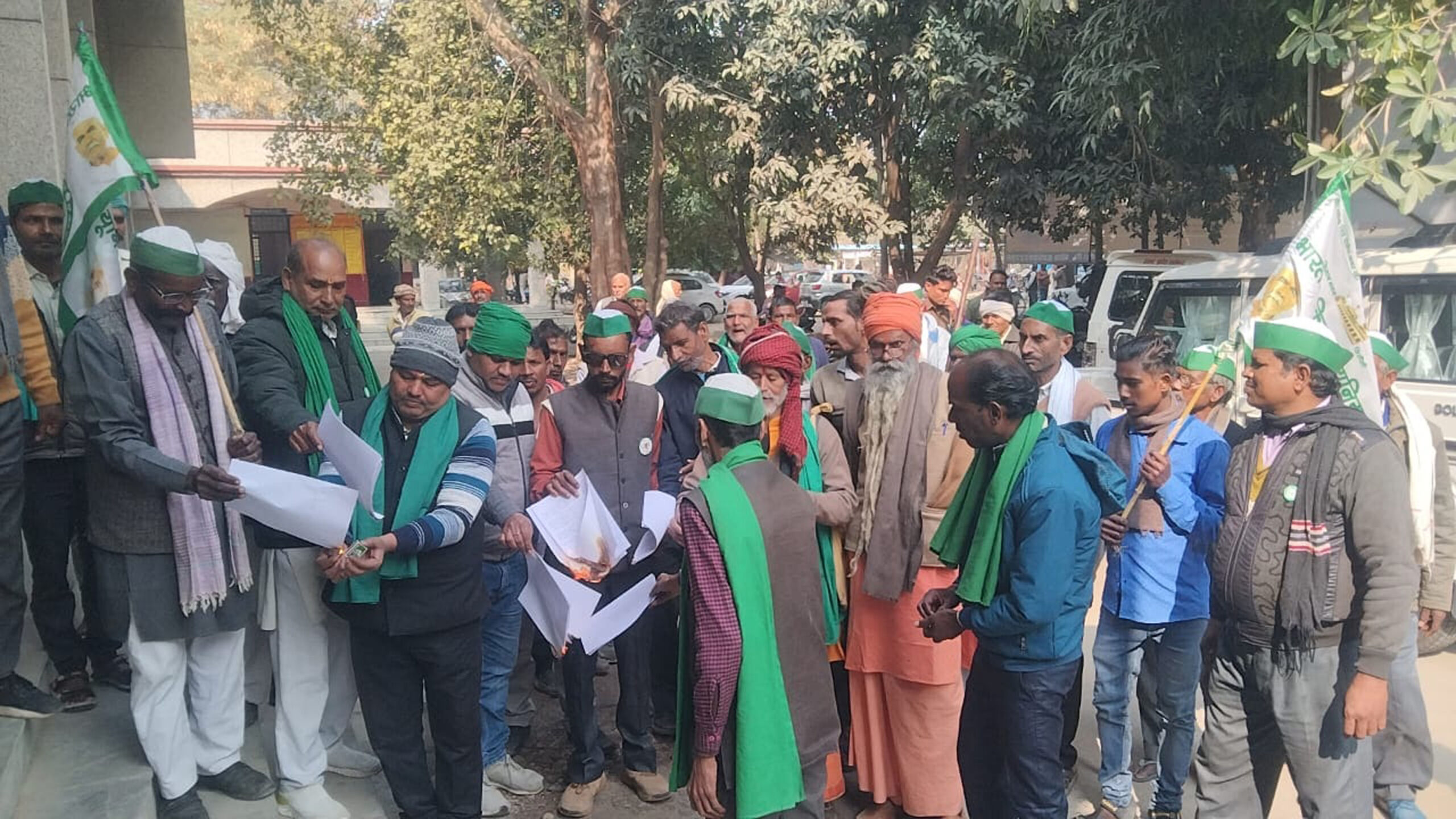 कृषि नीति मसौदे को लेकर किसानों ने दिया धरना, जलाईं प्रतियां