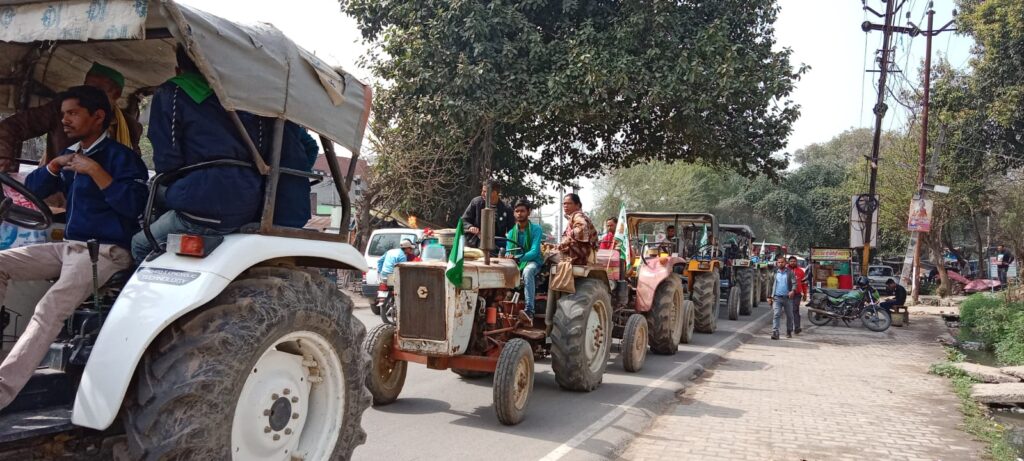 फर्रुखाबाद, समृद्धि न्यूज। किसान यूनियन ने अपनी मांगों को लेकर टै्रक्टर रैली निकालकर जिला प्रशासन को अपनी ताकत का एहसास कराते हुए चेतावनी दी कि यदि किसानों की समस्याओं का निस्तारण जल्द न हुआ तो उग्र आंदोलन करने को विवश होंगे। भारतीय किसान यूनियन के जिलाध्यक्ष अरविन्द सिंह शाक्य की अगुवाई में बड़ी संख्या में किसान अपने टै्रक्टरों के साथ नेकपुर स्थित अजय कटियार के आवास पर एकत्रित होकर मुख्यालय की ओर कूच किये।